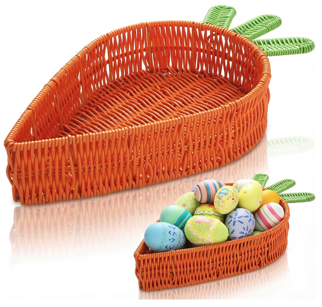 Easter Carrot Shaped Rattan Woven Basket 11.6 x 9.6 inch Handwoven Storage Basket Wicker Bowls Food Serving Tray for Easter Egg Hunt Party Favors Fruit Candy Kitchen Table Decoration